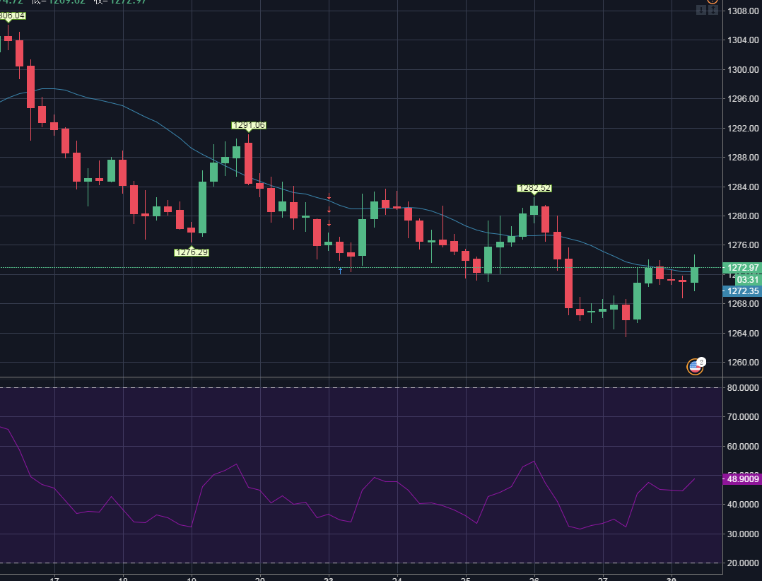 1.黃金在回落至1270附近多單進場,止損1265,止盈初步看在1280