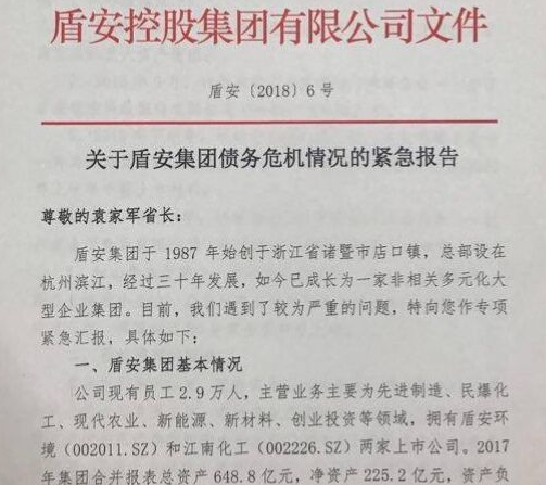 隨即網上流傳出一份《關于盾安集團債務危機情況的緊急報告》