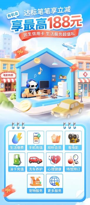 其中,中國民生銀行信用卡中心(以下簡稱“民生信用卡中心”)與京東、抖音、支付寶、攜程等頭部平臺聯動,推出“一鍵綁卡贈支付禮包”和“聚惠民生日”活動。