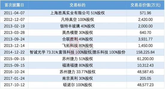 2015年11月,勝利精密以6.12億現金收購了蘇州捷力51%的股權,溢價率243.36%。